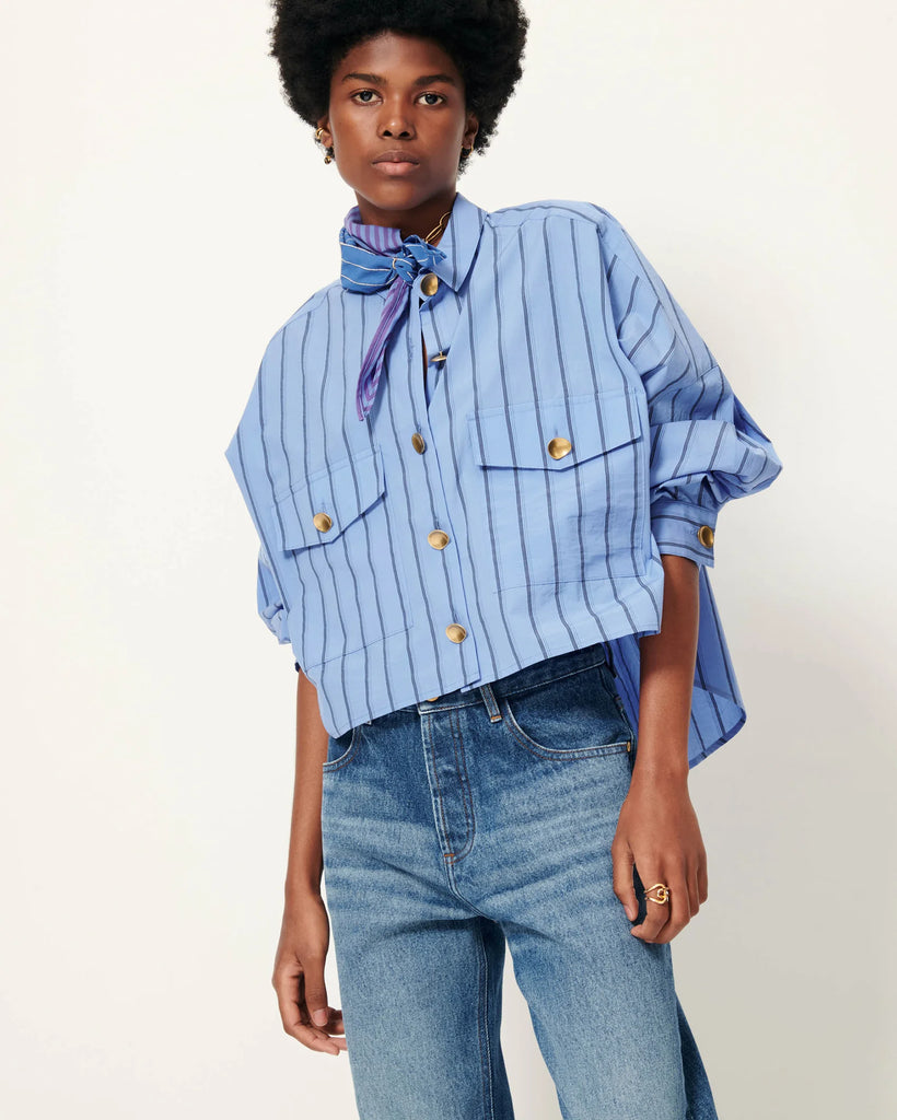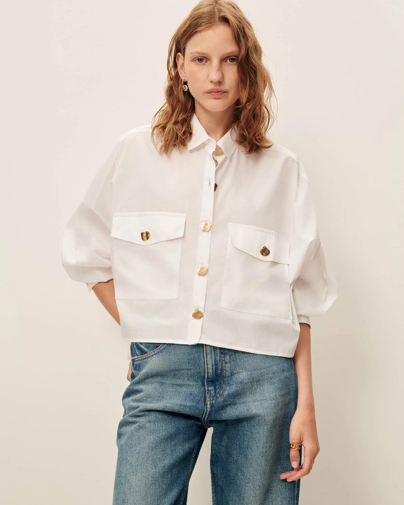 Short shirt with patch pockets in compact organic cotton poplin, woven in Italy.