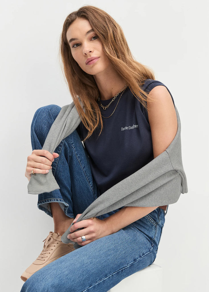 So there's no confusion. This classic cut tee says it all--simply styled in a tri-blend cotton with a cropped fit. Wear it to run errands, style it for a Friday night and rock it at the next family reunion.