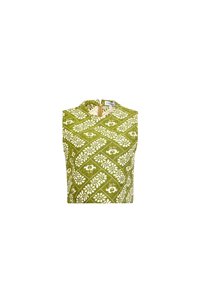 With its modern boxy fit and high-low cropped hem, the Manning Top in Legacy Jacquard Olive is an easy statement piece that adds effortless edge to your wardrobe. A sleek crew neckline and hidden shoulder zipper keep the lines clean and minimal, letting the rich jacquard fabric shine.